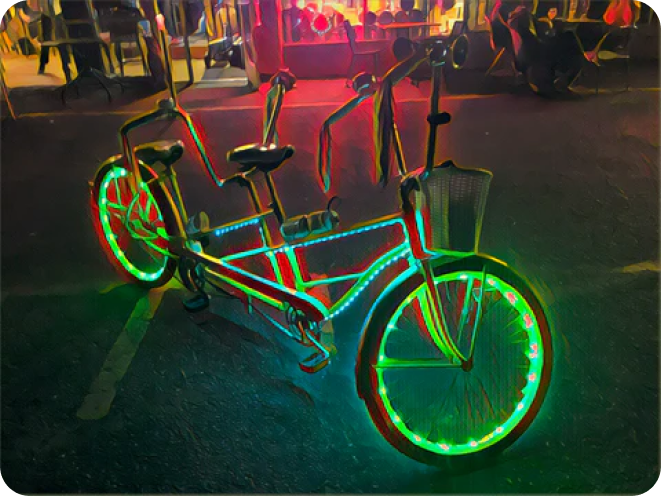 She's originally from Topeka KS and has been enjoying her new home in Boulder CO. She is also enjoying her total rebuild with new chains, new paint job, tassels and rad lights. She crushes the Thursday Night bike ride like a boss. We ❤️ her.